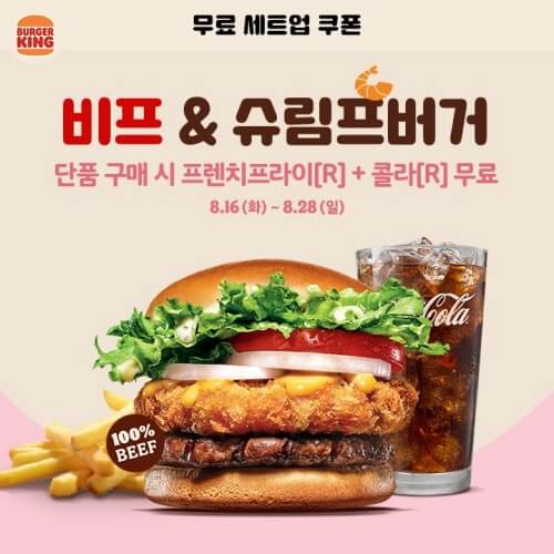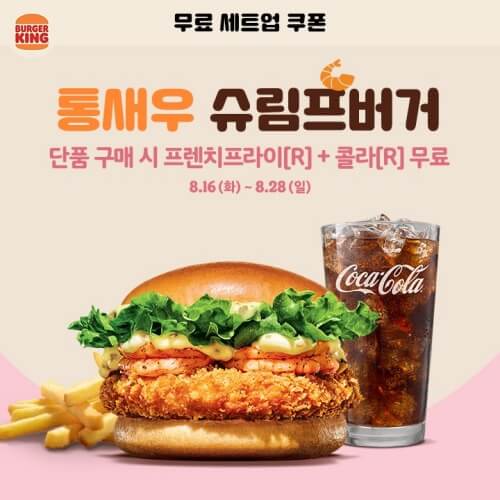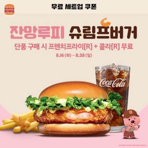잔망루피 슈림프버거, 비프&슈림프버거, 통새우 슈림프버거 이렇게 3종의 슈림프 버거 무료 세트업 쿠폰을 받아 드실 수 있습니다. 버거킹 행사 메뉴에서 빠지지 않는 것 같네요.