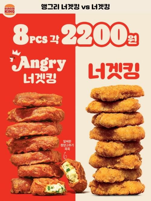 그리고 앵그리너겟킹과 너겟킹은 8조각에 2200원에 판매하고 있습니다.
